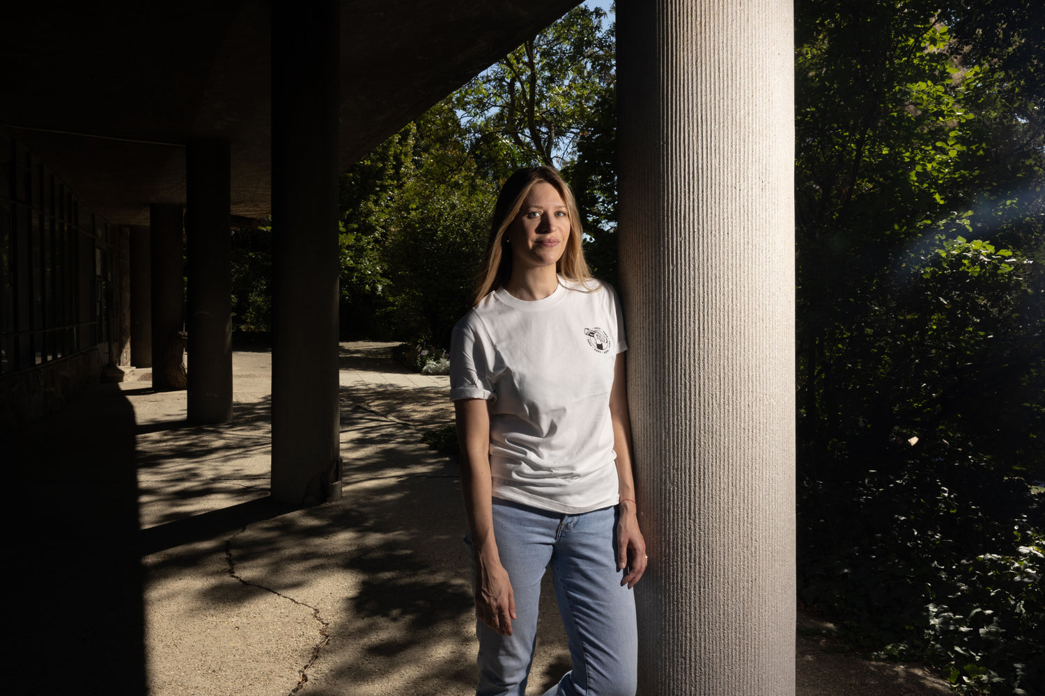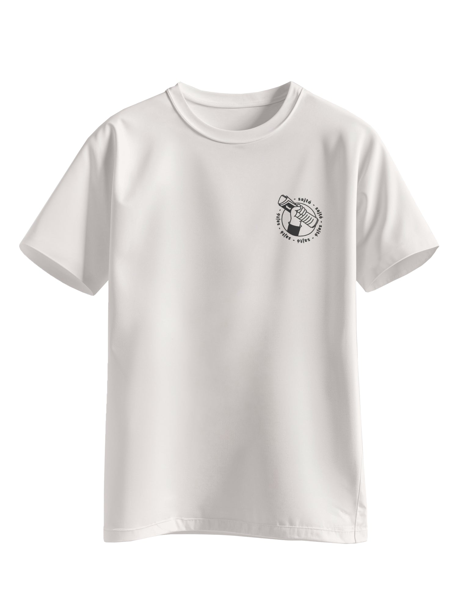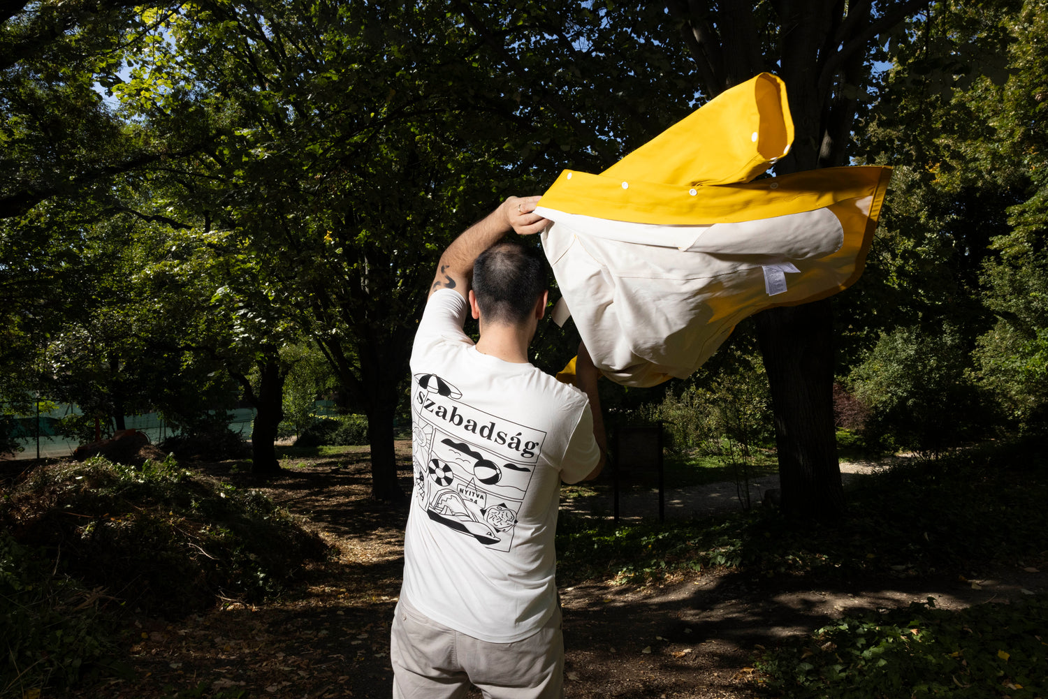 Klasszikus szabású, organikus pamut póló. Kézzel és vízbázisú szitanyomással készült egyedi mintával mindkét oldalán.